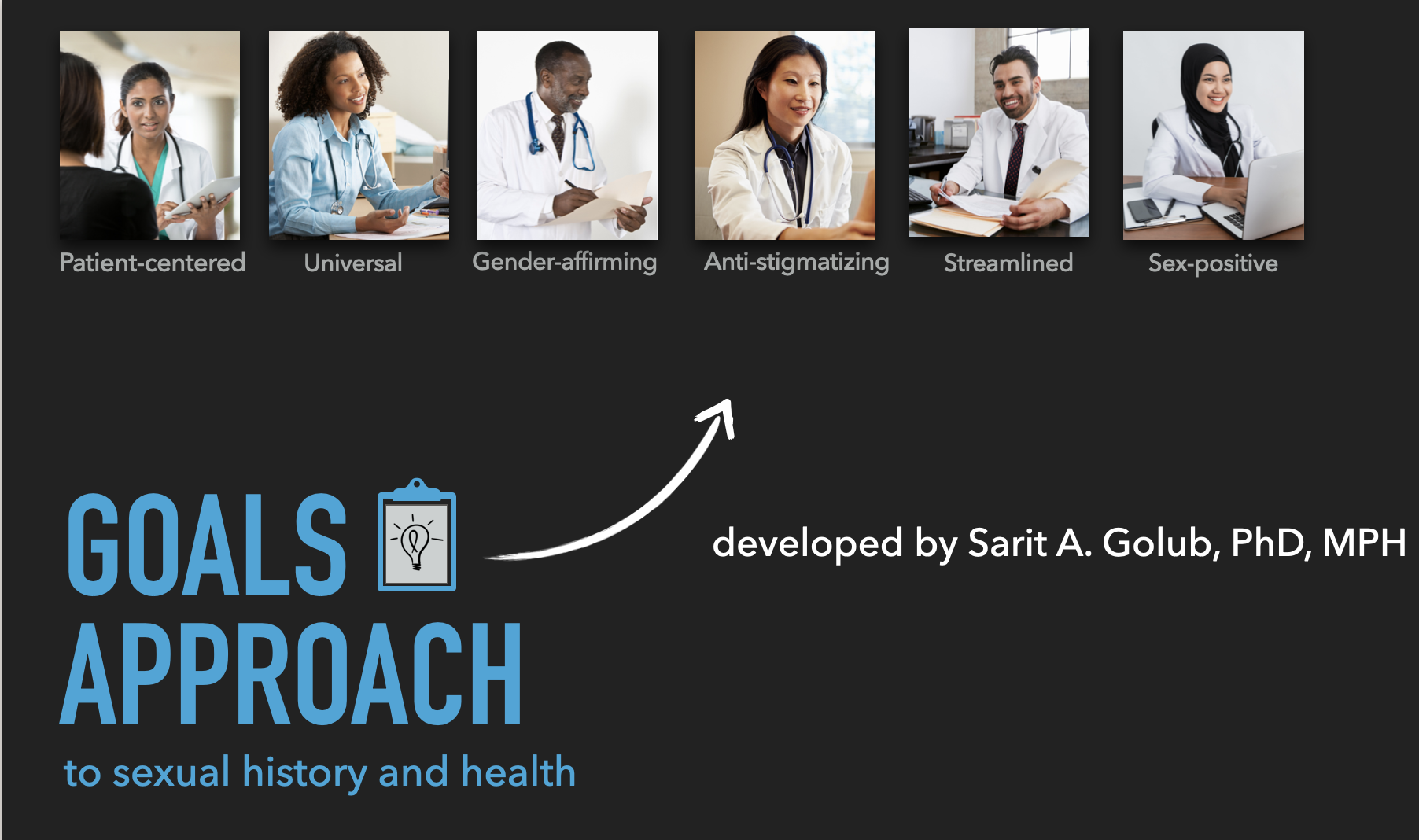 Dr. Golub developed GOALS in collaboration with the NYC Health Department to make the process of sexual history taking faster, easier, more effective, and more equitable. GOALS is a data-driven approach that trains providers to use affirming, non-discriminating, anti-stigmatizing and trauma-informed language in all HIV prevention conversations with clients/patients.